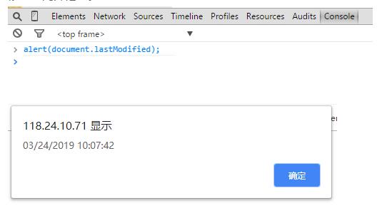 然后在控制臺(tái)里面輸入:alert(document.lastModified); ,按回車鍵后查看最后修改時(shí)間并記錄。