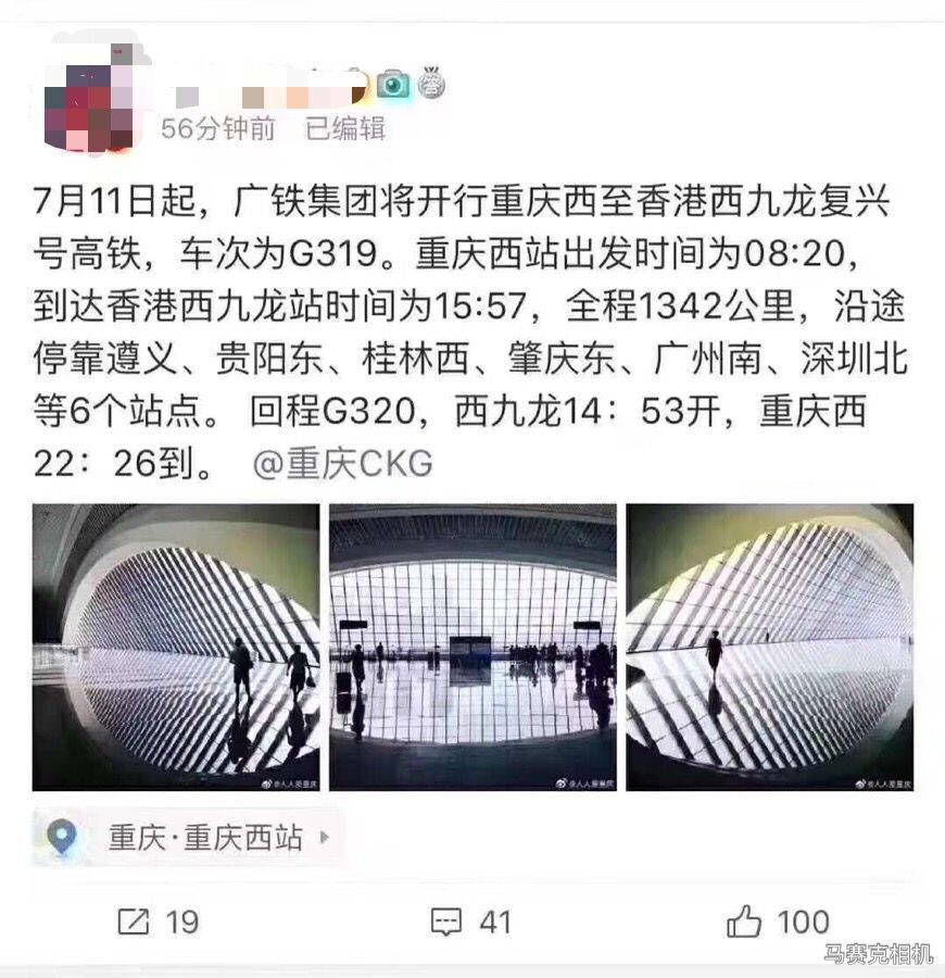 6日,一則關于“重慶將開行高鐵至香港”的消息刷爆網(wǎng)絡。重慶客戶端記者從重慶火車站證實得知該傳言屬實。