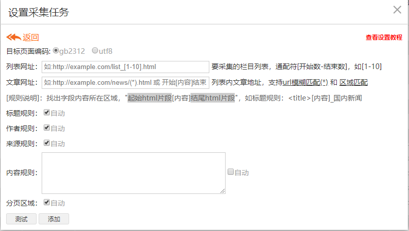 標(biāo)題、作者、來源、內(nèi)容和分頁規(guī)則的寫法都是一樣的,懂得其中一項(xiàng)的寫法,其他幾項(xiàng)都懂得了,所以這里就以內(nèi)容規(guī)則來舉例說明。