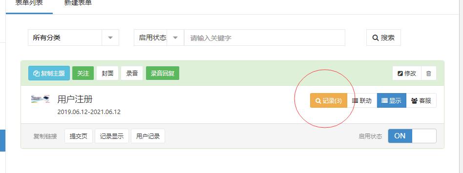 進(jìn)去之后點(diǎn)擊記錄 即可看到用戶提交的記錄