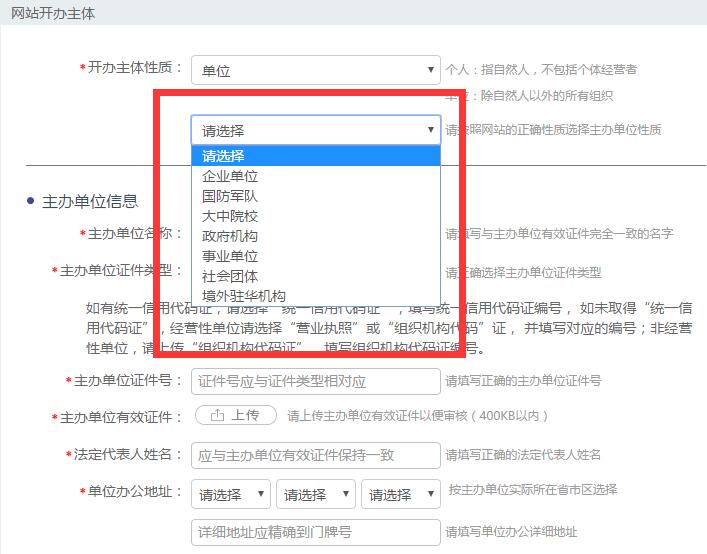 選擇單位,然后選擇主辦單位性質(zhì)