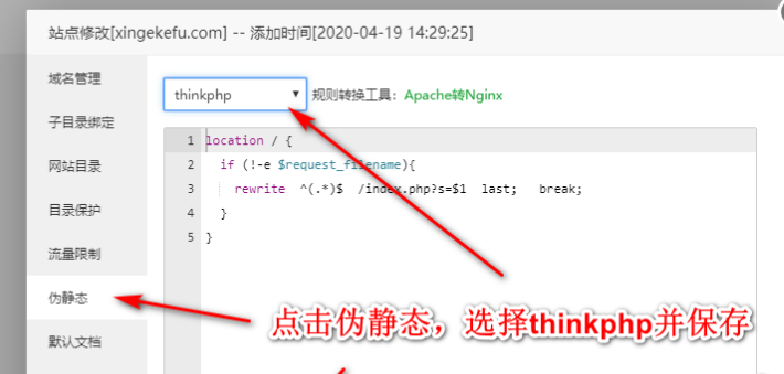 然后偽靜態(tài)選擇  think PHP 如圖所示