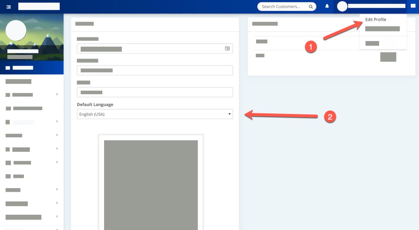 要更改管理員用戶語言,請導(dǎo)航到右上角的“編輯個人資料”并選擇您的語言。將為登錄的管理員用戶設(shè)置所選語言。