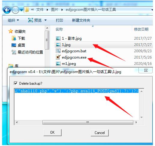 準備圖片1.JPG,利用edjpgcom工具把代碼寫入圖片