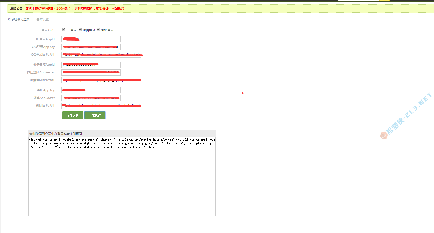 文章來自織夢俠[秩名]作者的-織夢社會化登陸插件(QQ、微信、微博) 織夢社會化插件集成了QQ,微博,微信登錄,讓網(wǎng)站登錄更加簡單